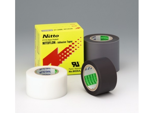 用于裹卷聚乙烯层压机等。 NITOFLON No.923UL 胶带的基材为 NITOFLON No.920UL(定向聚四氟乙烯薄膜)。 该胶带为单表面处理胶带,涂有耐热性较强的硅树脂粘合剂。 该胶带具有优良的特征,如电气特性、耐热性、耐化学性和非粘合性。
